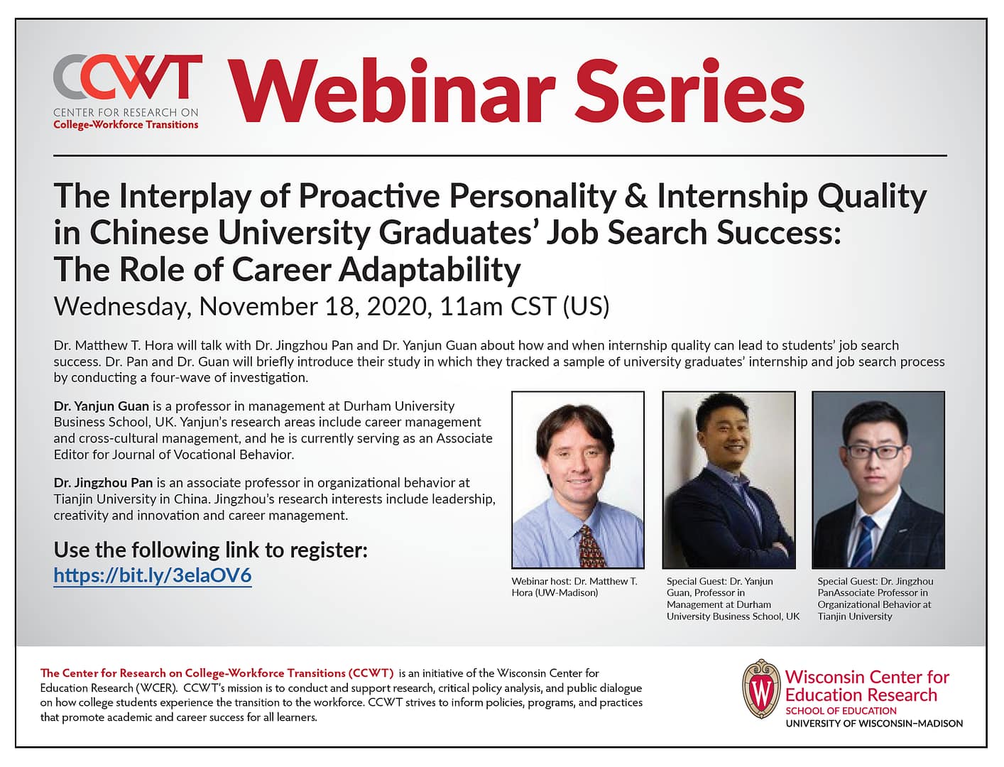 The Interplay of Proactive Personality & Internship Quality in Chinese University Graduates’ Job Search Success: The Role of Career Adaptability