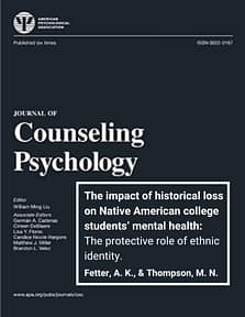Fetter, A. K., & Thompson, M. N. (2023). The impact of historical loss on Native American college students’ mental health: The protective role of ethnic identity. Journal of Counseling Psychology, 70(5), 486–497. https://doi.org/10.1037/cou0000686