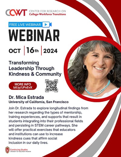 We have many opportunities to change patterns of exclusion and inclusion in science, technology, engineering, mathematics and medicine (STEMM). With this in mind, Dr. Estrada will describe findings from her research program in which she has longitudinally tracked and examined what types of mentorship, training experiences, and supports that result in students integrating into their professional fields and persisting in STEM career pathways. Her research focuses on the experiences of persons historically excluded because of ethnicity and race. Further, she will offer practical exercises that educators and institutions can use to increase kindness cues that affirm social inclusion in our daily lives.